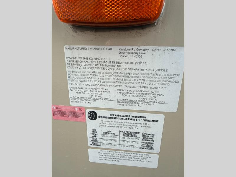 Used 2016 Keystone RV Bullet 248RKS Travel Trailer