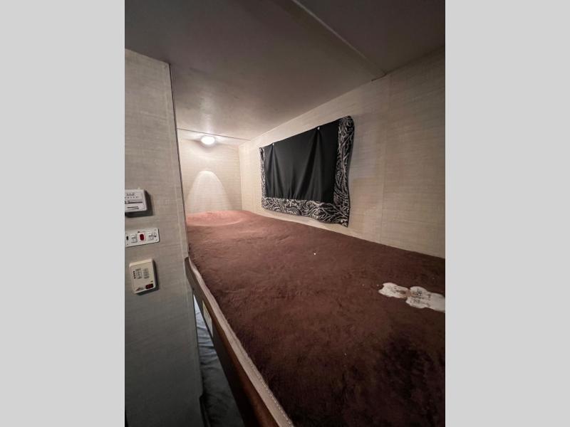 The 28" x 74" bunk beds are next to the bath in the rear of the trailer.