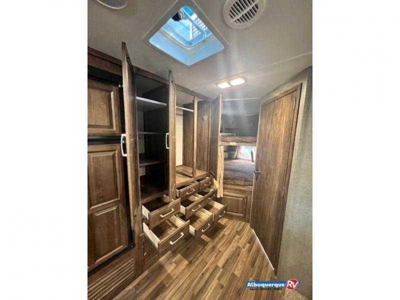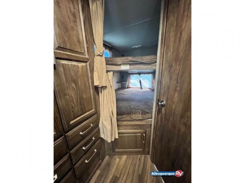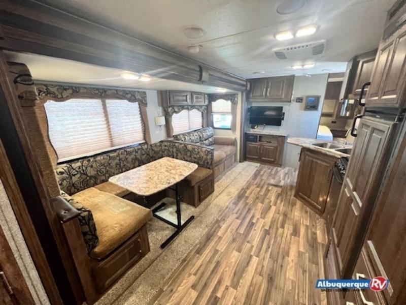 This Cougar Half-Ton Series 28RBKWE travel trailer by Keystone RV features a bunkhouse, rear bath, u-shaped dinette, and a pull-out camp kitchen too!
