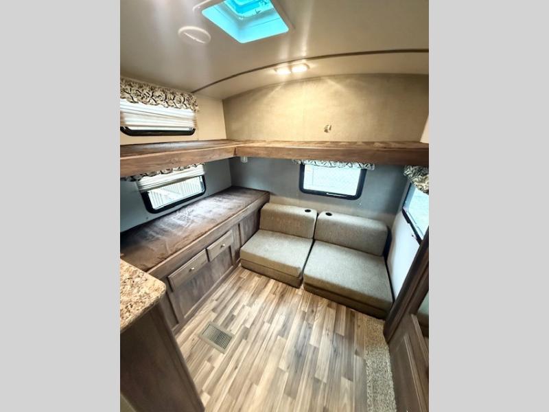 Enjoy plenty of seating with the slide out sofa including overhead storage space and a large u-shaped dinette for mealtime enjoyment plus more. Both can easily be turned into additional sleeping space if needed at night too.