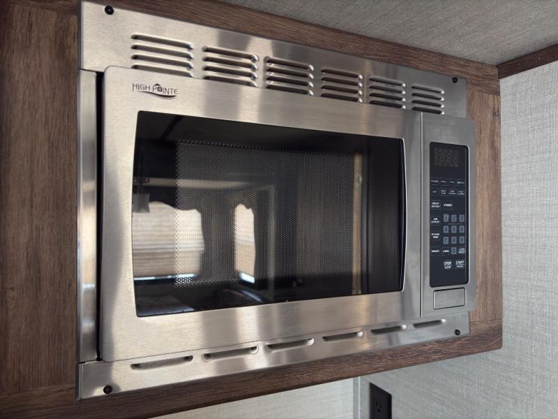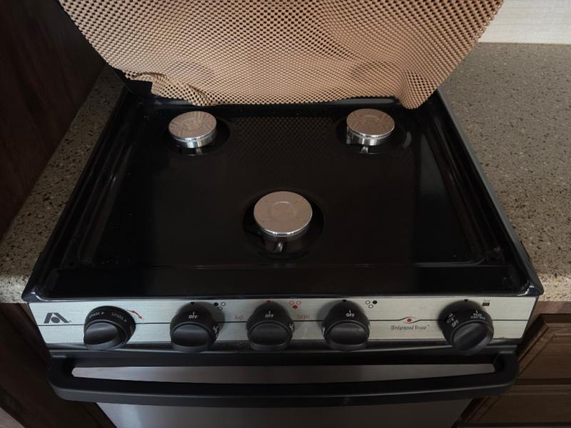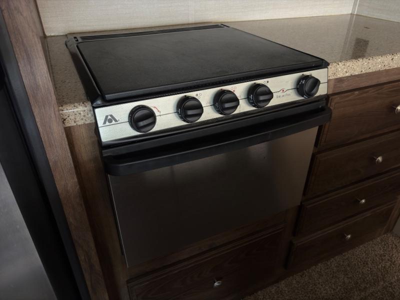 - Kitchen Slide Out – Three-burner range, refrigerator, and generous cabinet space