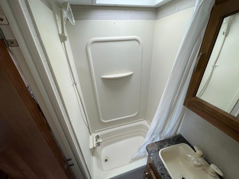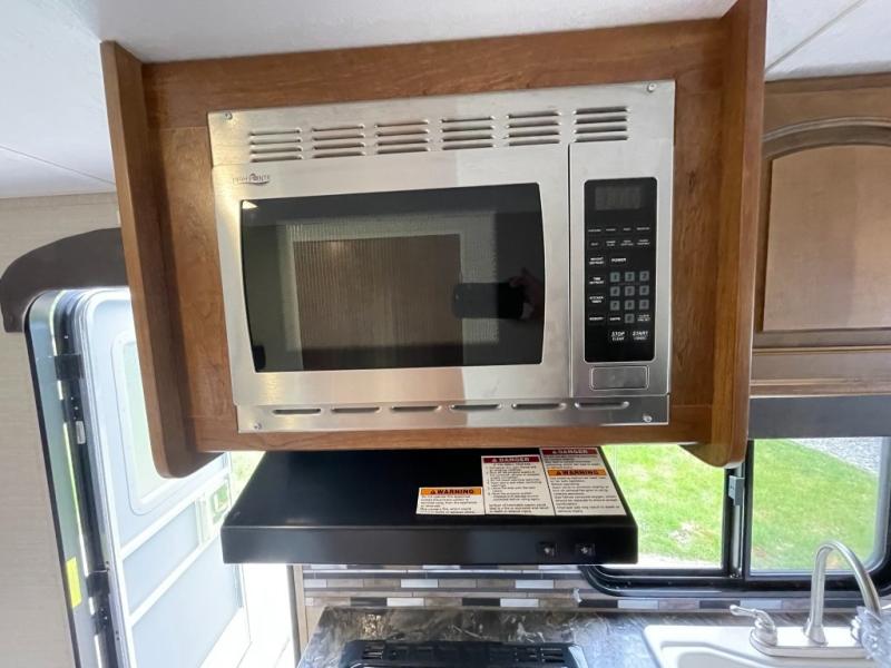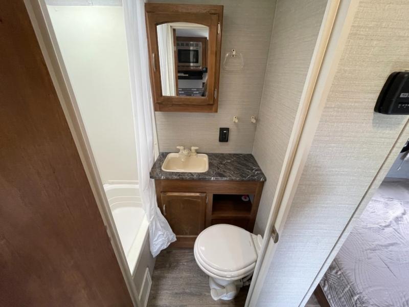 There is a booth dinette in the back with storage along one side. A handy wardrobe for additional storage, plus there is a TV location above the pantry, and so much more!