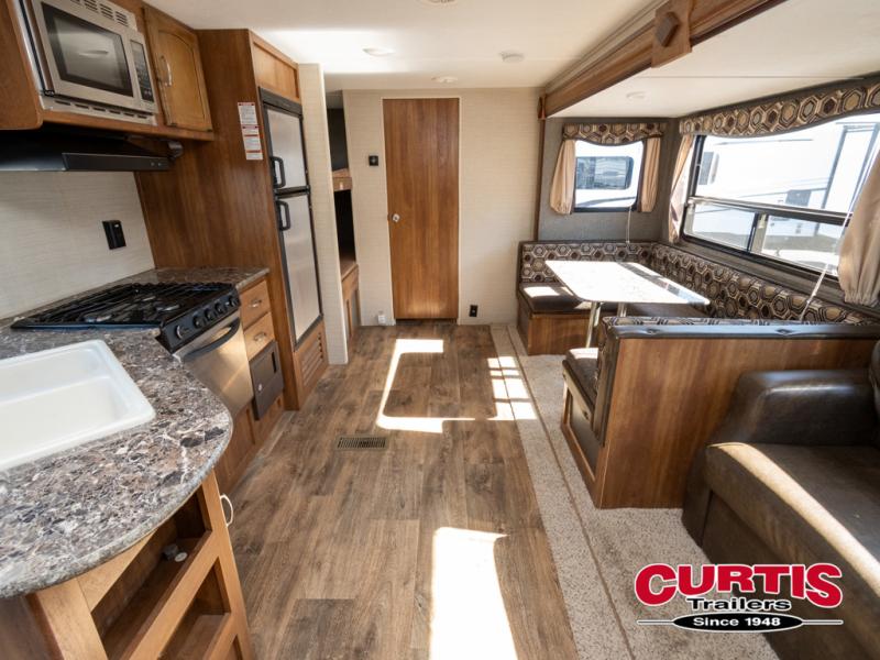 A rear set of bunks, rear bath, and large single slide provide a spacious way to travel in this Keystone Springdale 267BHSEWE travel trailer.