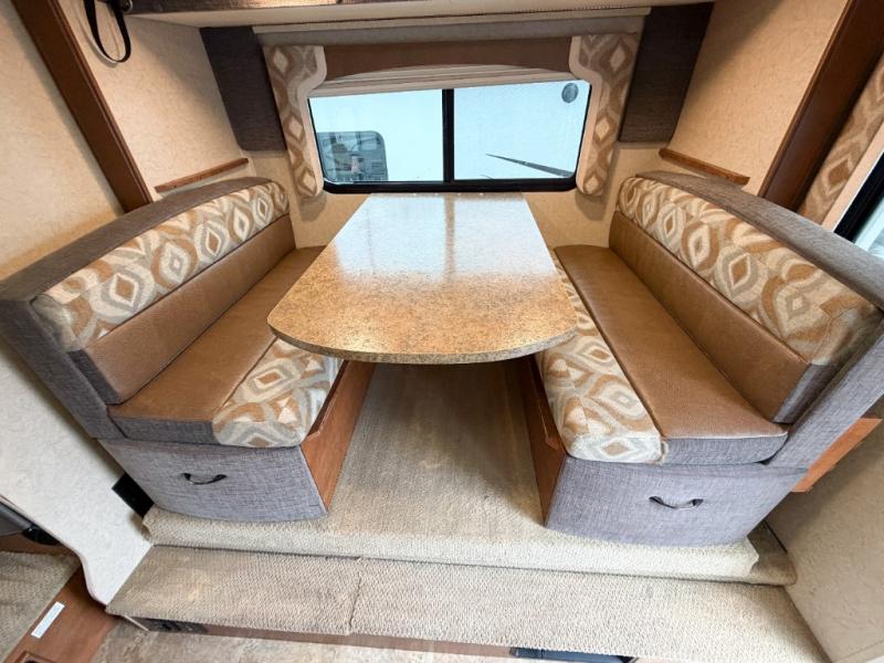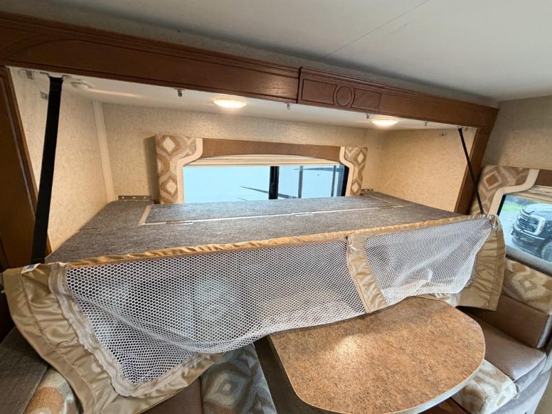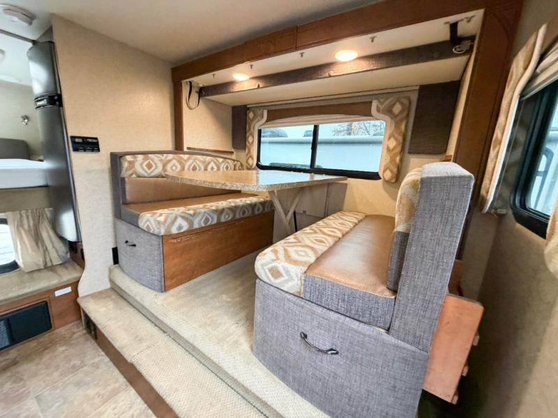 Above the dinette slide that is perfect for mealtime, you have the option of adding an overhead bunk with child restraint that provides sleeping for a one extra. You can also add day/night shades in the cabover/dinette area, plus so much more!