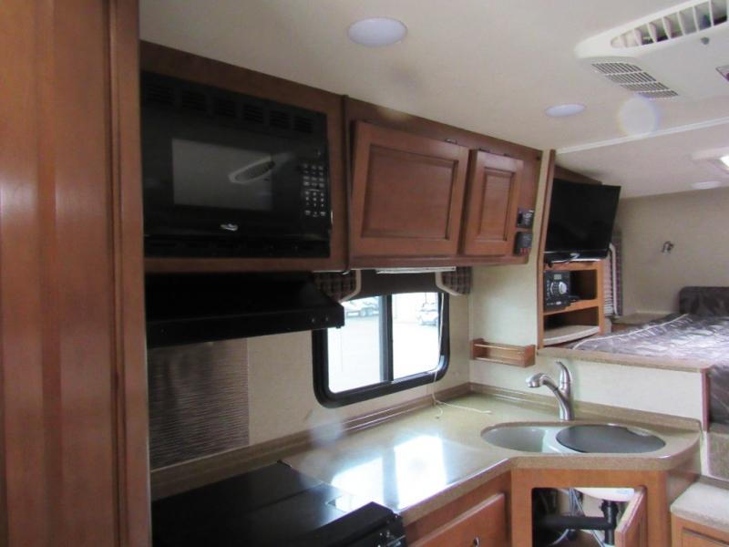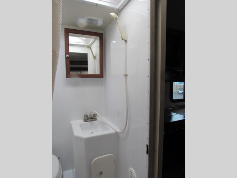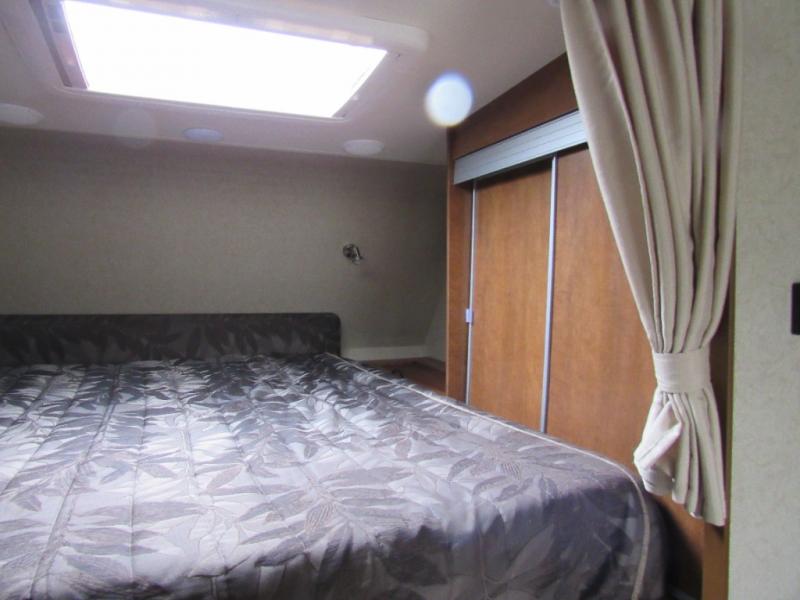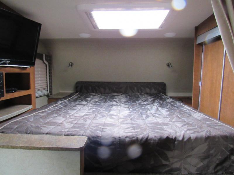 Step up to a queen size bed with entertainment center on the left side where you can add a 24" LED 12 volt TV. There is a wardrobe opposite, and a front cabinet for your things, along with a hamper on the opposite side to help keep things neat and tidy, plus so much more!