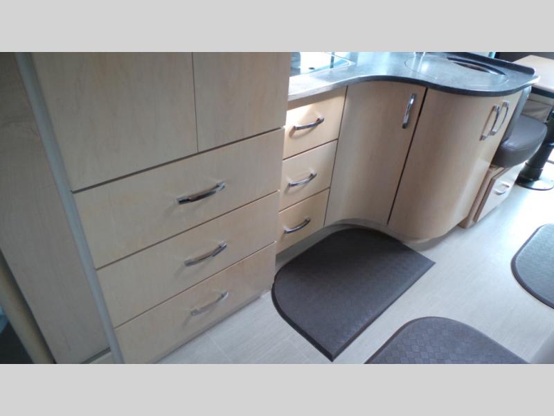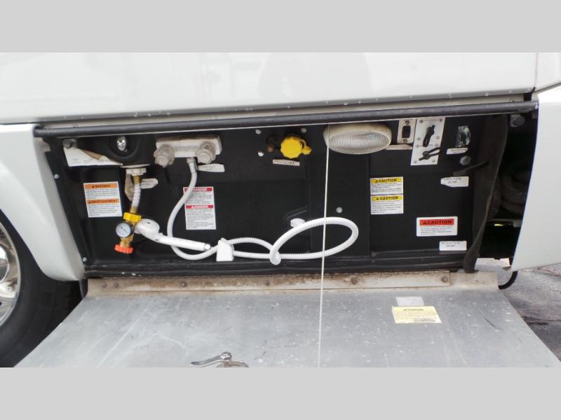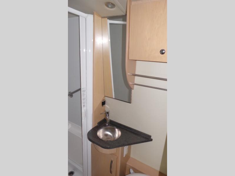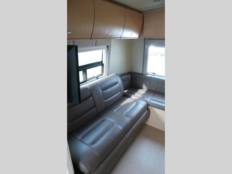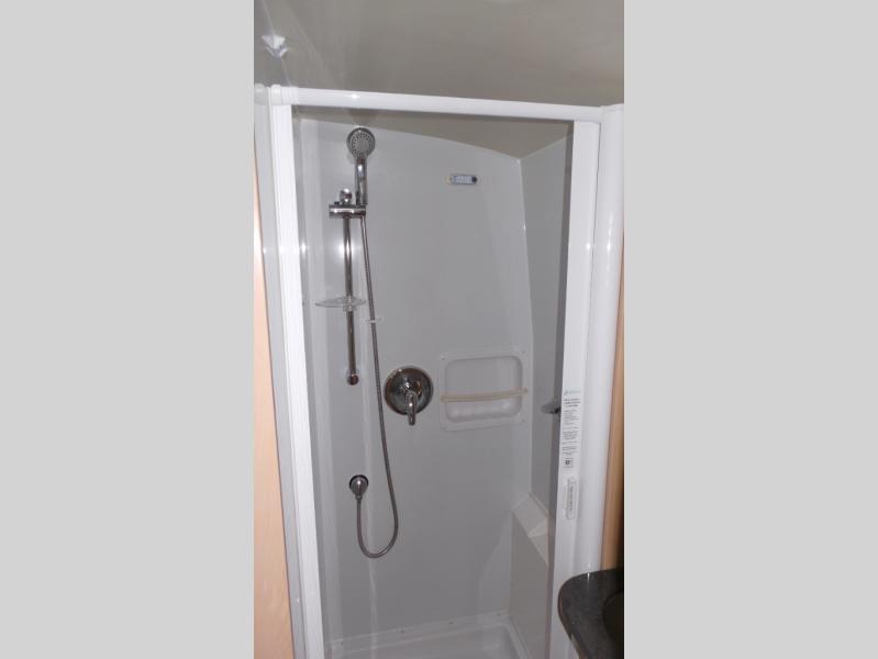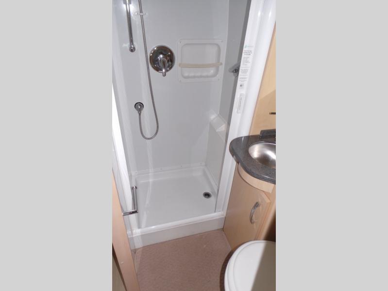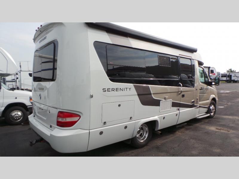 Inspired by the automotive industry, the Serenity's curved fiberglass body construction is designed for strength and durability. Sleek aerodynamic exterior lines diminish wind noise and boost fuel economy. The end result is one of the most beautiful and unique RVs on the road today.