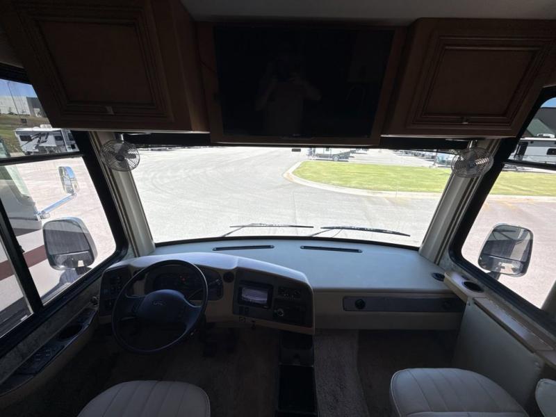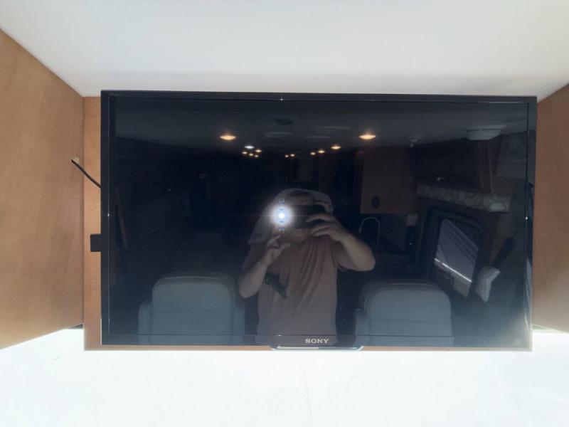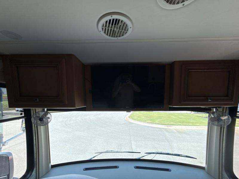 Both the driver and passenger seats swivel around which adds additional seating in the motor home. Above the cab there is an overhead TV which can easily be viewed from the kitchen and living area.
