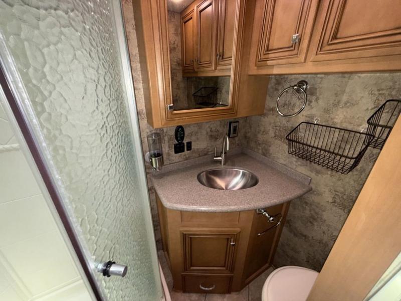 There are plenty of overhead cabinets throughout the motor home which provide great storage.