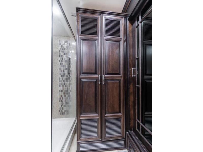 Located in the rear is a large master bathroom with a sink, toilet, wardrobe with sliding mirror doors, adjustable shelves in the wardrobe, drawers or washer/dryer, and a 50" x 34" shower, and so much more!