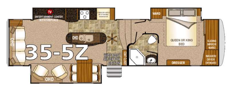 Spaciousness abounds in the Arctic Fox Silver Fox Edition 35-5Z fifth wheel by Northwood Mfg. thanks to TRIPLE slides! Plus there are several eye catching features such as a fireplace, kitchen island, multiple wardrobes in the bedroom, and so much more!