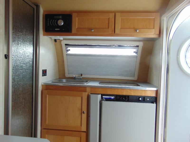 As you enter you will notice the front two burner stove top and single sink for light cooking and/or perking your morning cup of coffee.