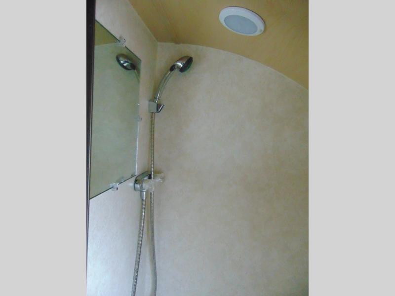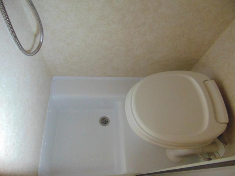 You will love the convenience of the on board wet bath for keeping clean and fresh, plus there is a 19" TV mounted on the outer bath wall facing the rear of the unit so you can easily watch television from the dinette or while you are tucked in for the night, plus so much more!