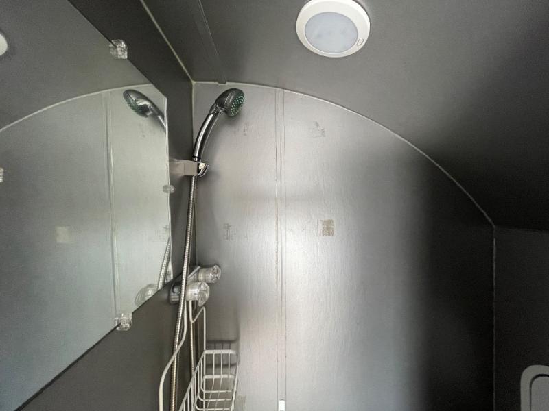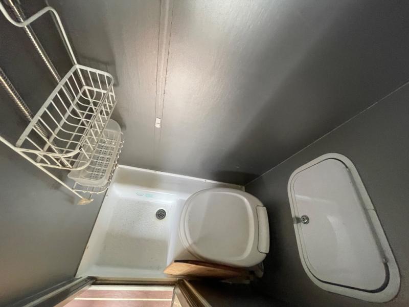 The front corner features the convenient wet bath that includes a shower and sink. You will have no trouble finding hot water as this unit features the Alde 110 volt instant hot water system. There is also a cassette porta-potty which is great for nighttime use.