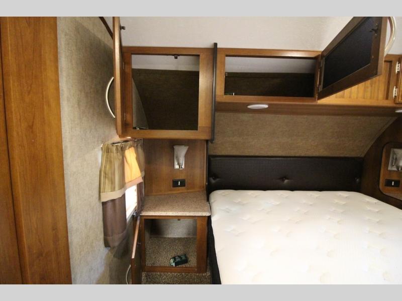 What I liked most: Ceiling storage is convenient and doesn't rob too much space. Bedroom has plenty of storage next to and around the bed.