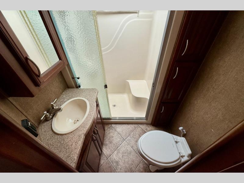 What I liked most: Right when you walk in you know this is a nice fifth wheel. The kitchen setup is no joke. The seating arrangement is perfect. The bedroom has great storage, actually the whole rv does.