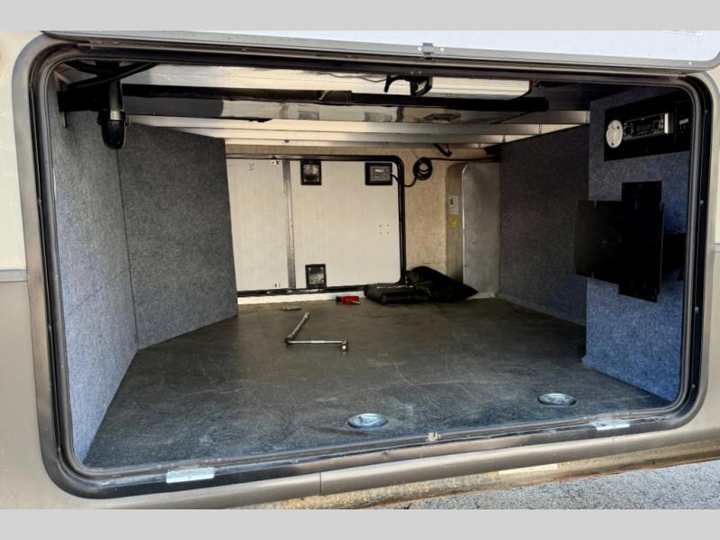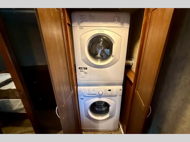 The front bedroom has a slide with a closet, nightstand, and king bed. Across from the bed there is a dresser and overhead TV. Along the front wall you will enjoy all of the space the walk-in closet offers as well as it being washer/dryer prepped, plus more!