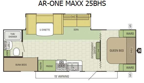 There is plenty of room for everyone in this AR-ONE MAXX bunkhouse model 25BHS by Starcraft RV. This model features a single slide out for added interior space, and bunk beds for the kids.