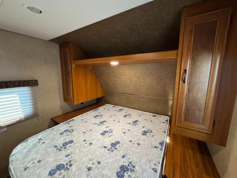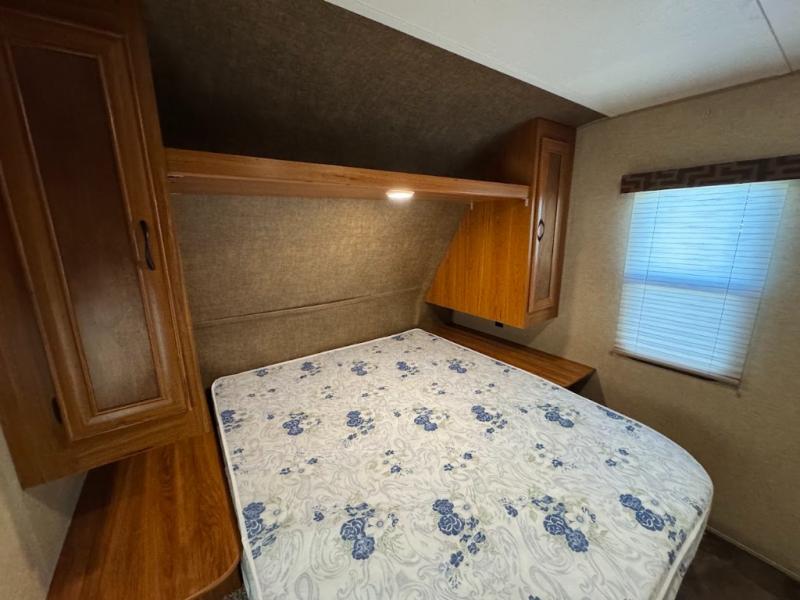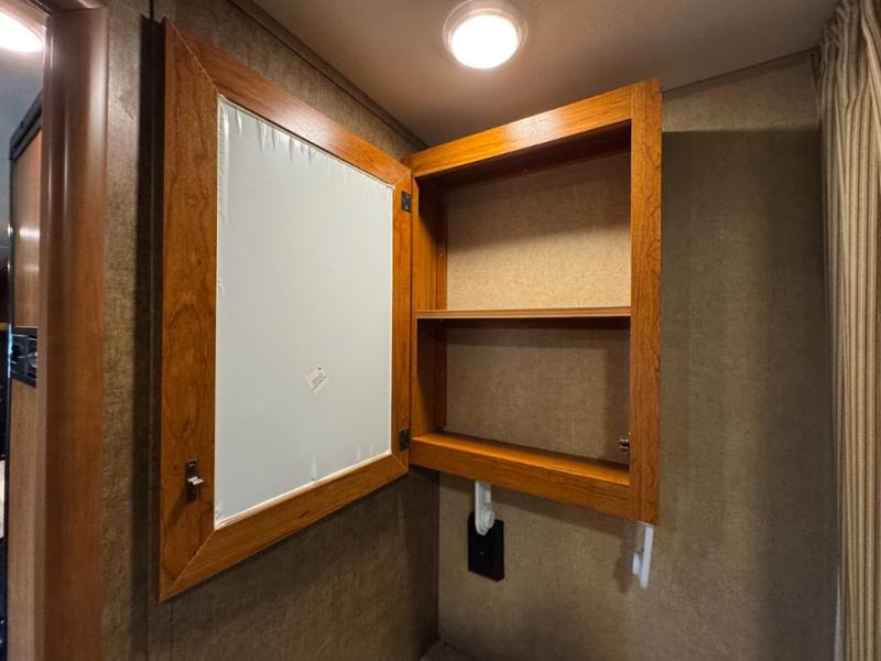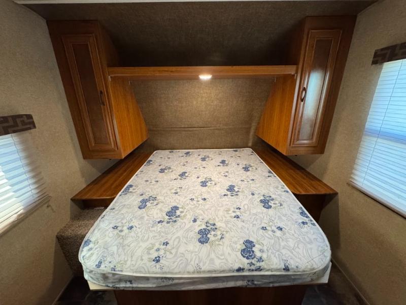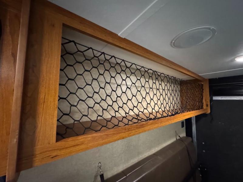 In the bedroom you will enjoy a bit of privacy away form the hustle and bustle of the rear living space. There is a comfortable queen bed up front with dual bedside wardrobes for storage, and an overhead cabinet for your things as well.
