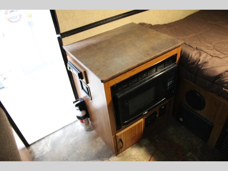 Cook light meals and snacks easily with a refrigerator, three burner cook-top, and single kitchen sink. A microwave cabinet is located just inside the door for added convenience also.