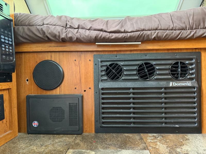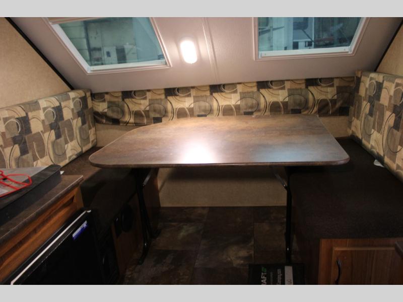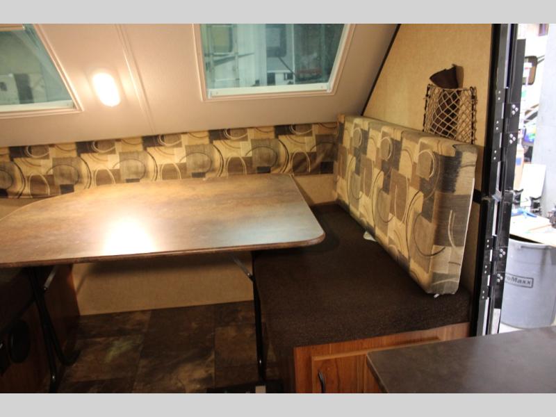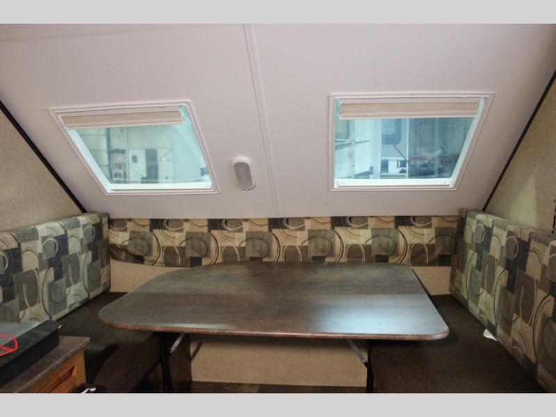 There is a booth dinette for mealtime or added sleeping space if needed. There is also a comfy full size bed in the rear.