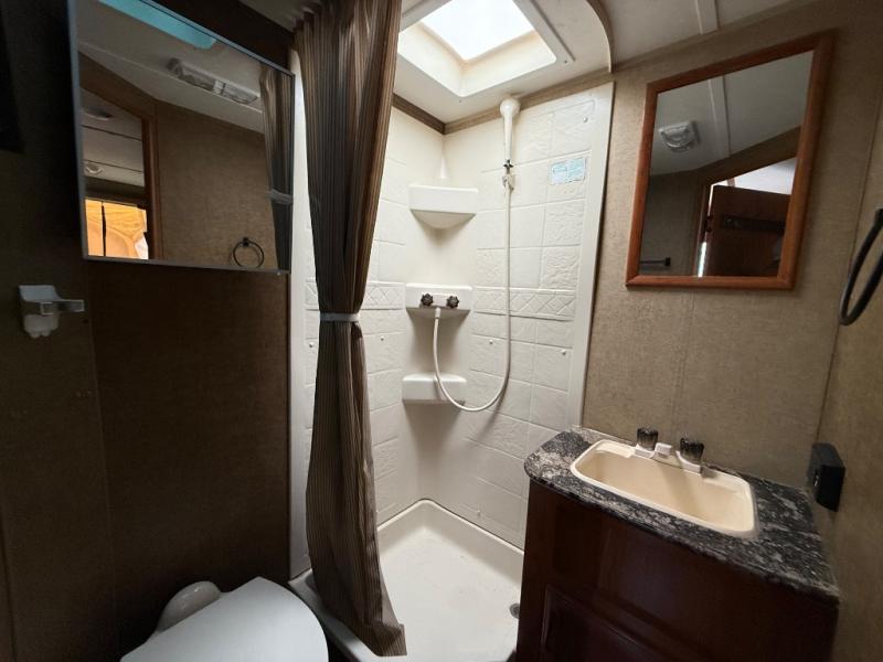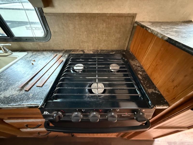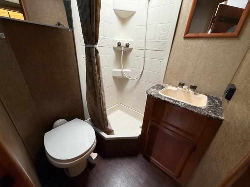 The front also offers a queen size tent end bed with overhead shelf, and so much more! This RV is being sold AS-IS.