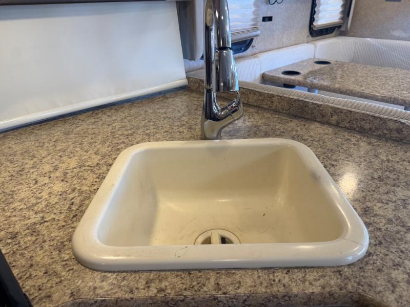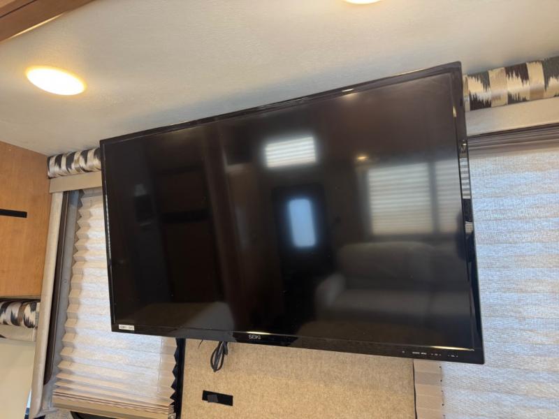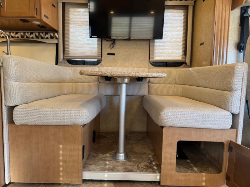 Step inside and find a jack-knife sofa to the right of the entrance. Across from the sofa is a booth dinette for mealtime and more. There is a 40" TV above the dinette that can easily be viewed from the sofa opposite. A convenient coffee table is between the driver and passenger seats.