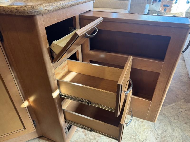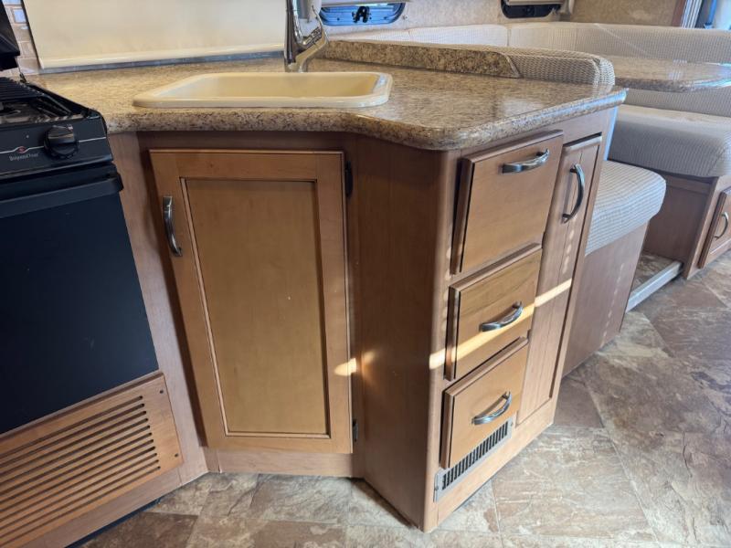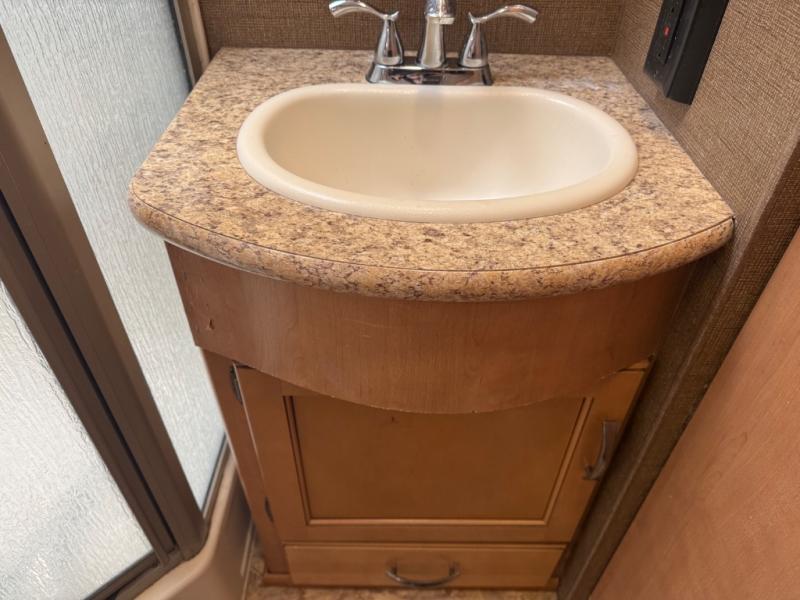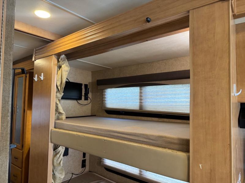 Back up front you will find a drop-down overhead bunk for added sleeping space when needed, plus so much more! Outside you can even choose an optional 32" LED TV for your enjoyment. Enjoy traveling in this 30.2 A.C.E. gas class A motorhome today.