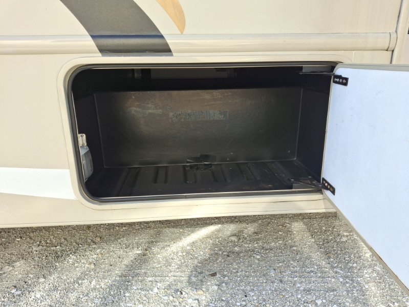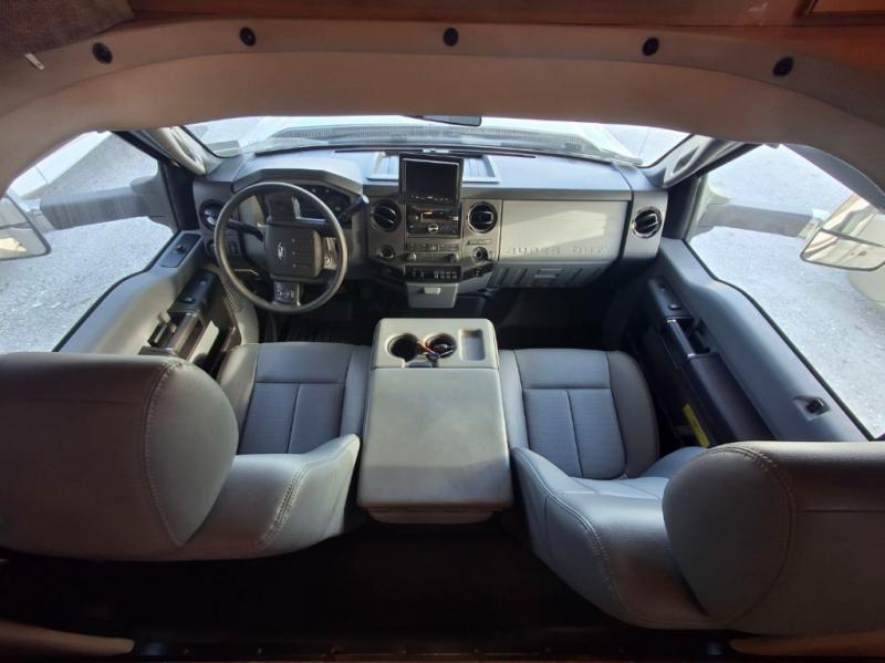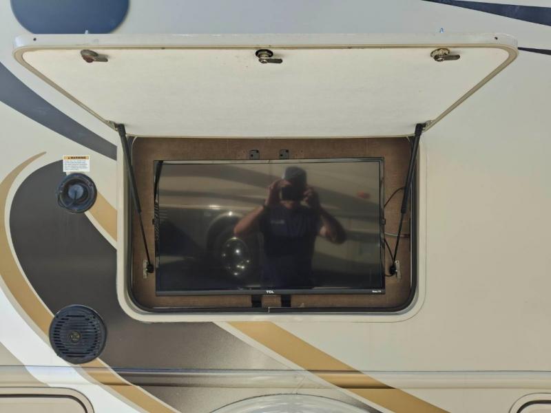 Across the front, there is a cab-over bunk with a 40" LED TV with swivel on the driver's side.