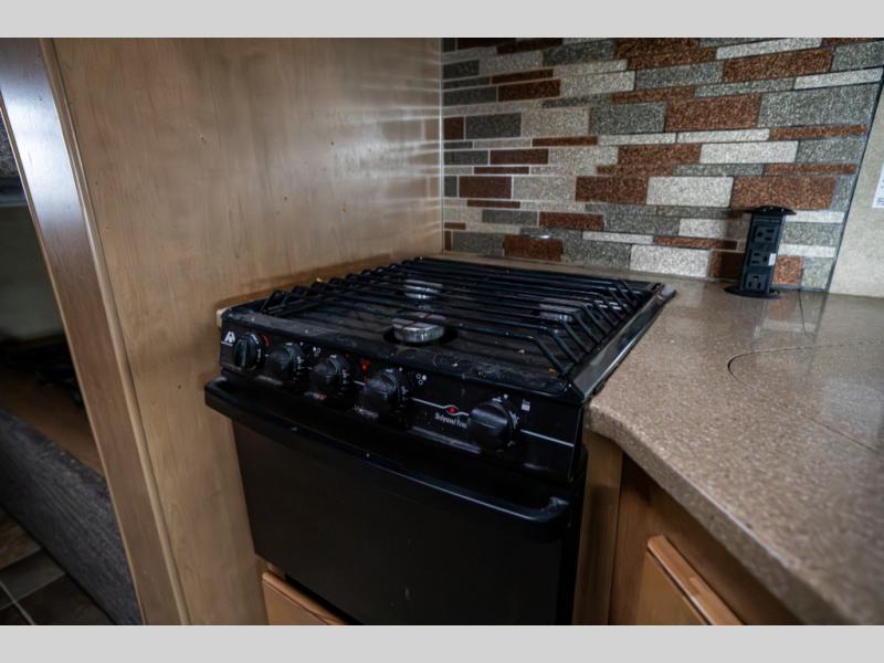 As you enter you will see a 40" x 60" jackknife sofa to your immediate right featuring comfortable seating during the day and it can easily be made into sleeping space at night. There is a booth dinette opposite that is part of the full driver's side slide. Next to the dinette is a large kitchen sink with overhead storage, a three burner range with microwave oven above, plus a refrigerator and pantry across the unit to the left of the entrance door.