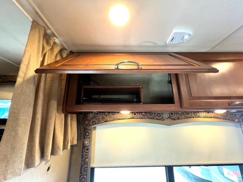 A convenient cab over bunk provides even more sleeping space that the kids will fight over, plus there is a 40" TV with swivel base above.