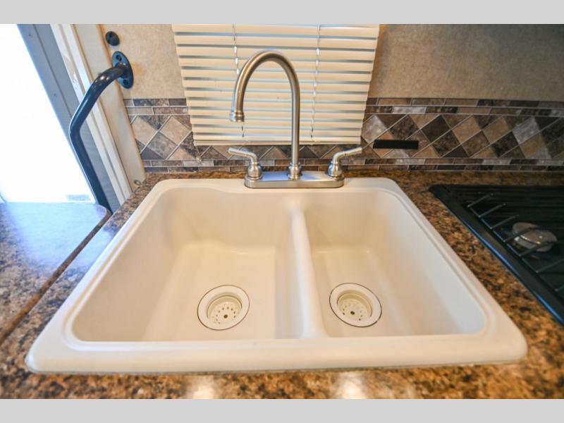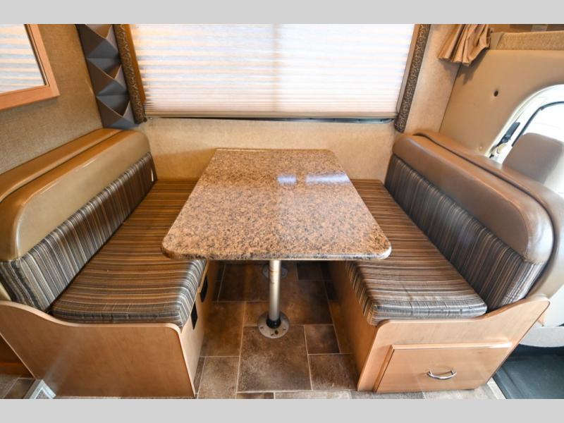 Above the cab, there is a bunk area which features 54”x96” sleeping area plus there is a 40” LED TV with a swivel arm which makes it easy to watch TV from just about any location in the front of this model. Enjoy your meals at the Dream Dinette and at night you can easily convert this area into additional sleeping space.