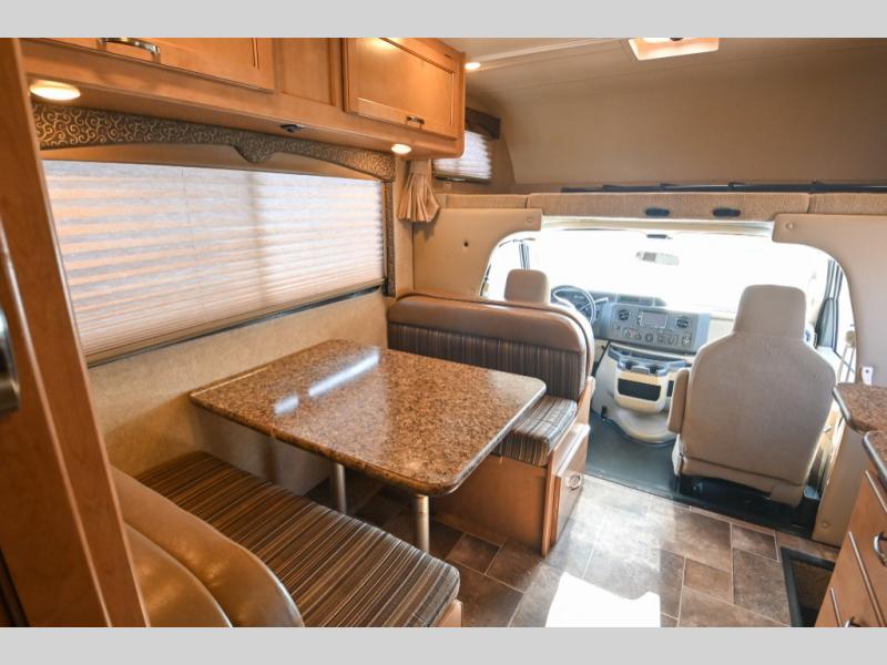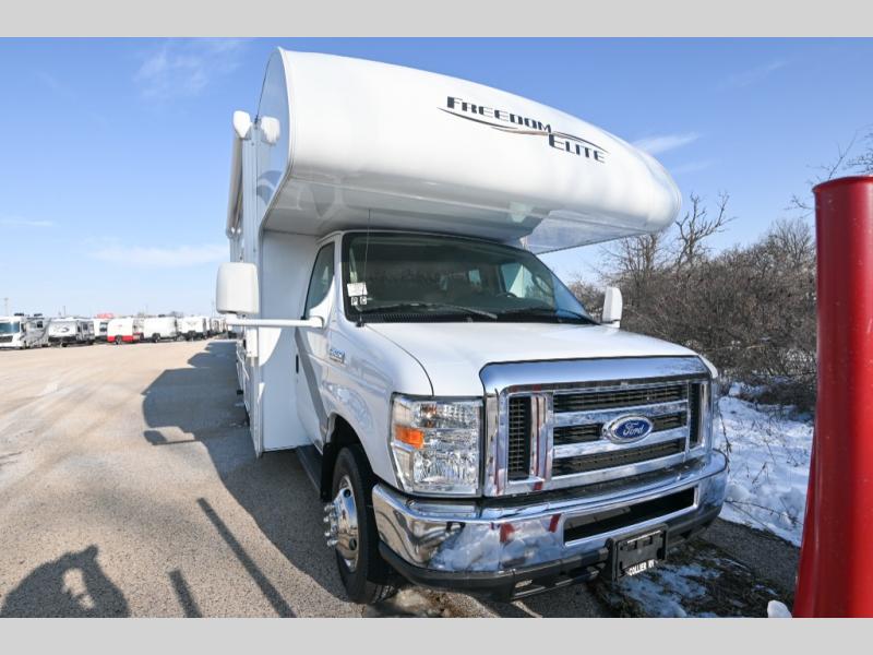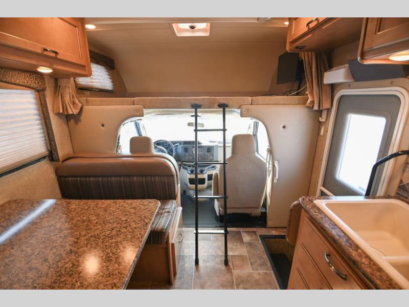 Load up your family, your camping items, and easily set out to the destination of your choice with this single slide out 22FE Freedom Elite by Thor Motor Coach. You will find sleeping space for five people throughout this class C model.