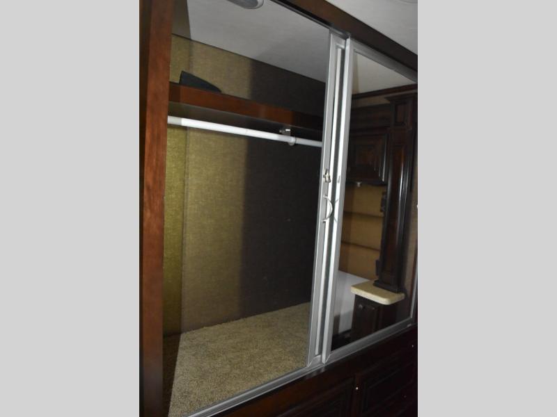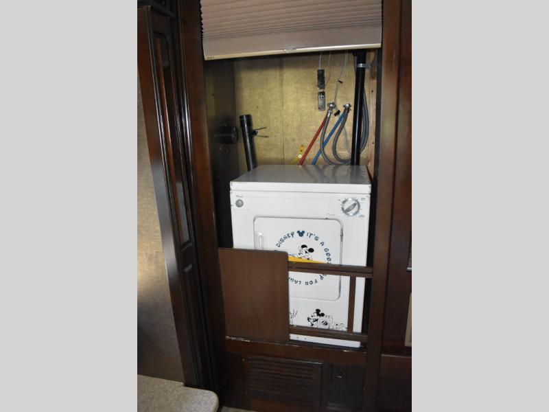 The rear bedroom has a slide with a king bed, and along the rear wall there is a wardrobe, washer and dryer. Across from the bed the wall slide has a dresser, closet, and 32" LED HDTV.
