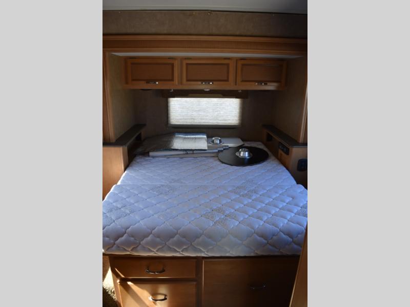 Above the cab area you have a drop-down overhead bunk with a 36" x 72" sleeping area. Below a coffee table between the driver and passenger seats which is perfect for your morning cup of Joe.