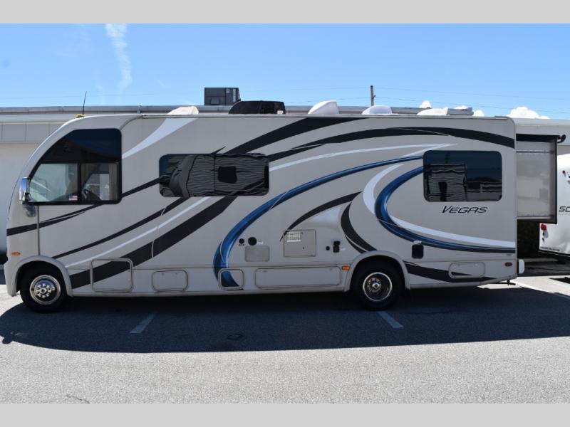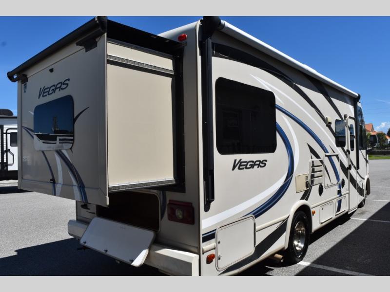 This Thor Motor Coach Vegas class A gas motorhome has exactly what you need to head out for awhile before returning home! Model 25.2 offers a rear slide out to create more space without increasing driving length. There are also complete kitchen and bath amenities, and so much more!