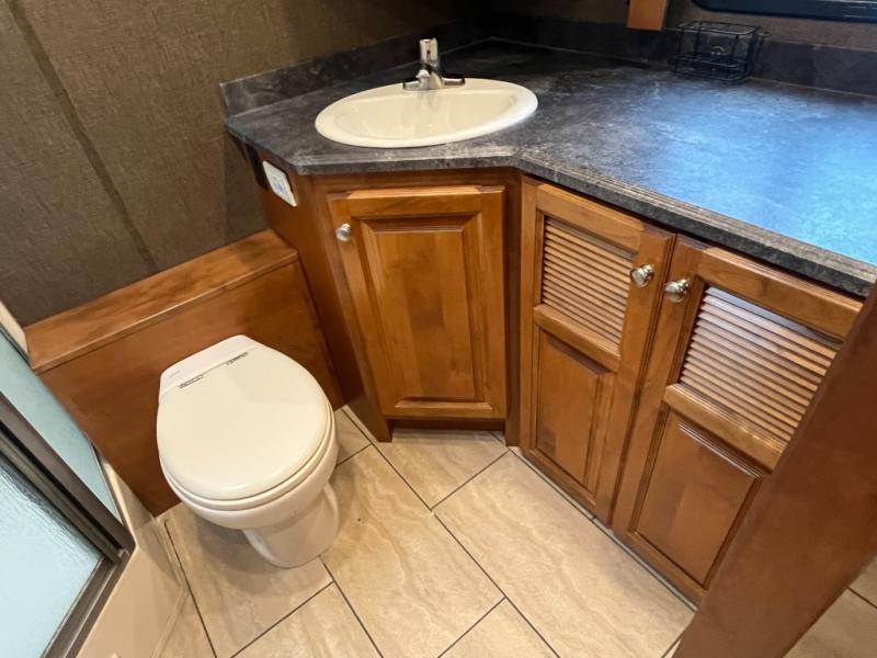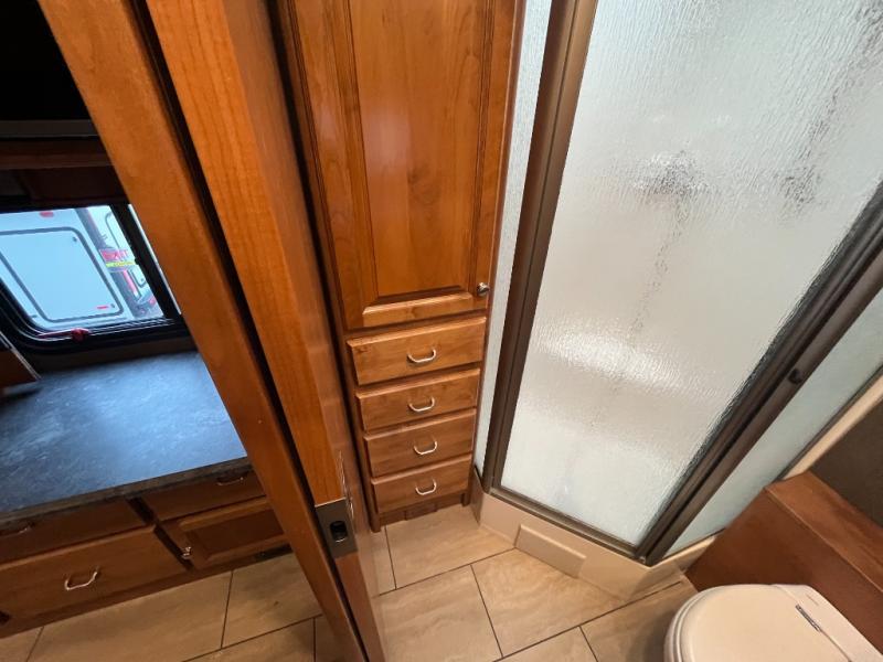 Step into the Allegro 36 LA class A motorhome to find two captain's chairs and overhead cabinets at each side in the front of the coach. You may choose an optional center TV and an optional driver side door.