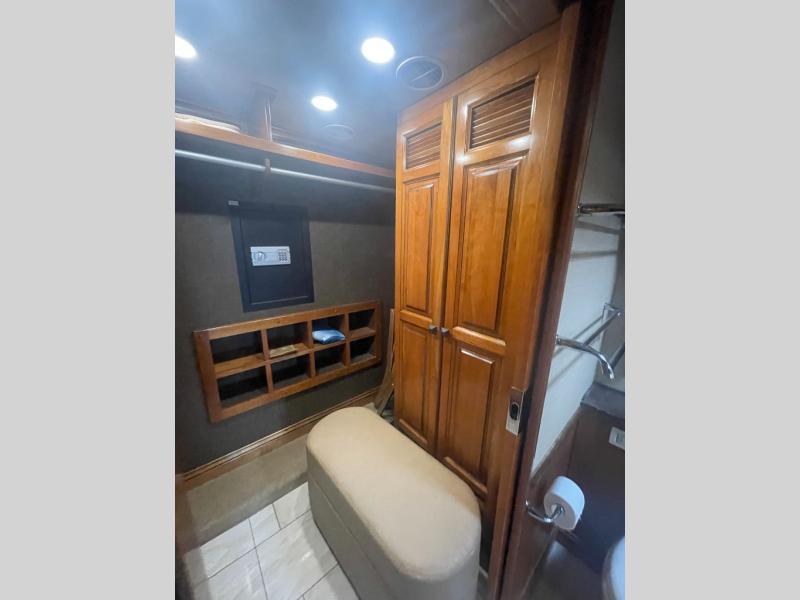 The very rear of the motor home has an optional washer/dryer, floor to ceiling closet, and along the rear wall there is a nice wardrobe for hanging you clothes.