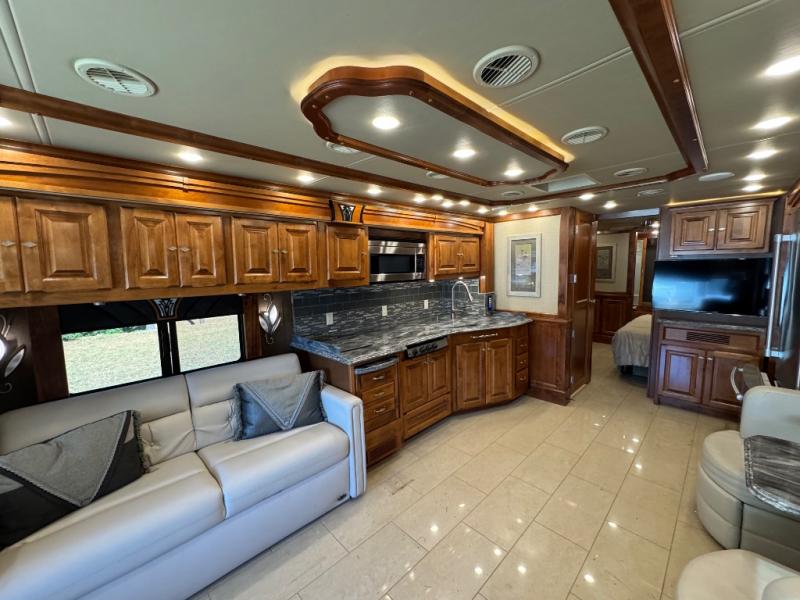 The quadruple slide out Phaeton 40 QBH from Tiffin Motorhomes features a rear full bathroom, an additional half bath and sleeping for up to seven.