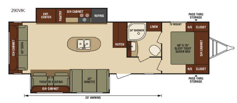 You will find plenty of overhead cabinets throughout the travel trailer as well as an exterior pass thru storage area, and so much more!