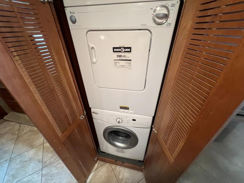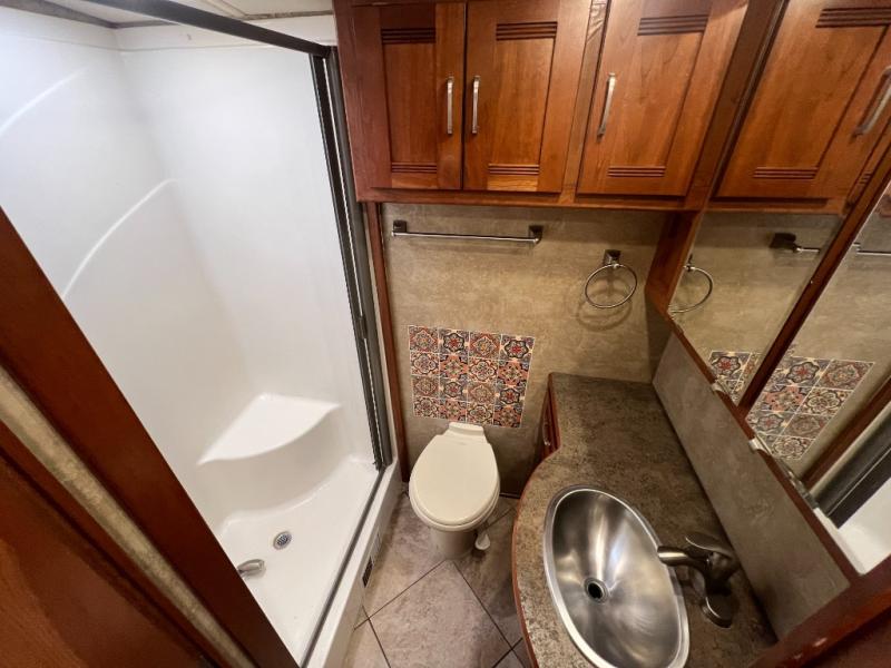 The complete bath is also centrally located and provides a shower, toilet, and vanity with sink, plus overhead storage.