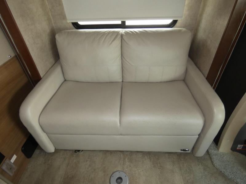 Step inside and enjoy a slide out sofa sleeper with table straight ahead for meals, or just for hanging out.