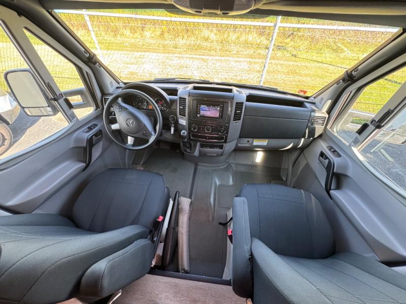 Step inside just behind the front passenger seat. Notice how both driver and passenger seat can swivel around creating additional seating space once parked. There is overhead storage on both sides of the cab area, or you can opt. for a cabover bunk that is 49" x 75", which easily makes room for one additional guest to sleep.