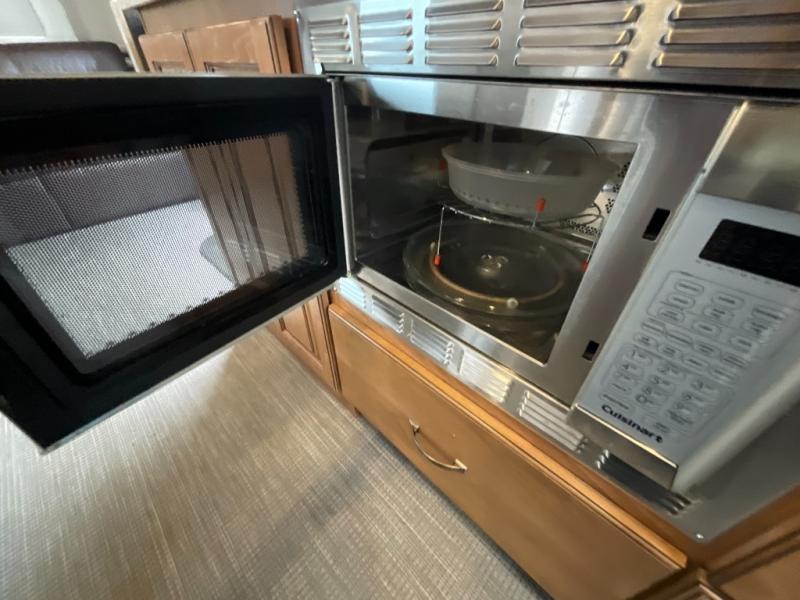 The fully equipped galley kitchen includes a three-burner cooktop, convection microwave, refrigerator, and stainless-steel sink, making meal preparation simple and enjoyable on the road. The luxurious wet bath features a full shower, vanity, and toilet, combining elegance with functionality. Thoughtful lighting and durable finishes throughout make the Classic 30FQB a welcoming and stylish home away from home.