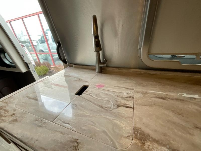 Fully Equipped Kitchen and Bath: Modern appliances and functional layouts for convenience on the road.