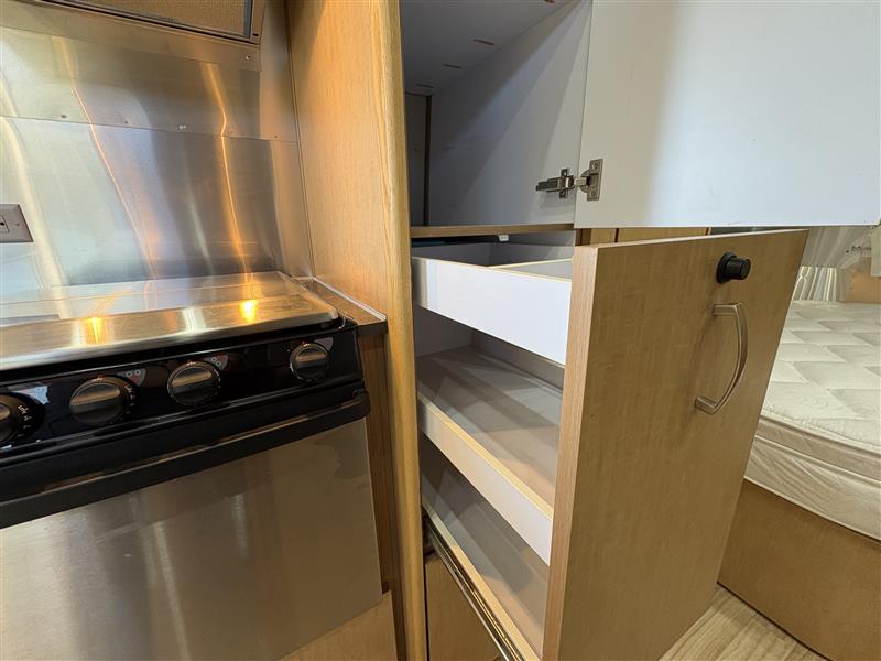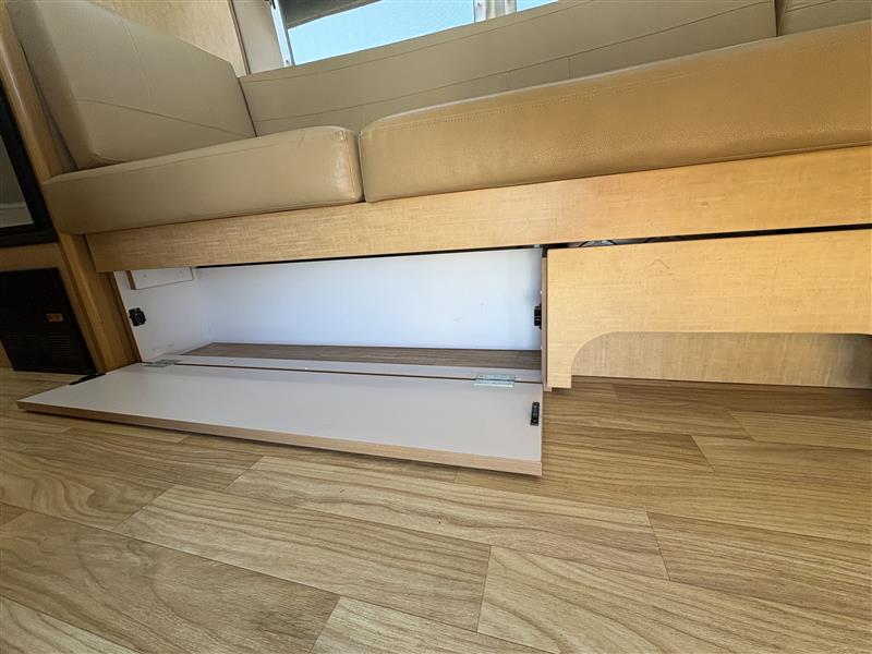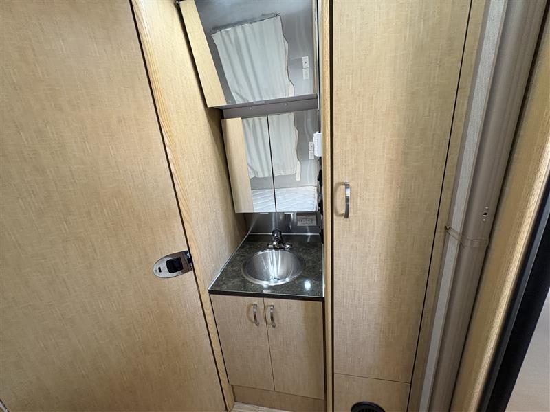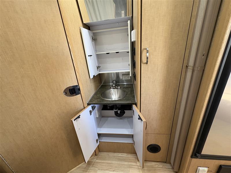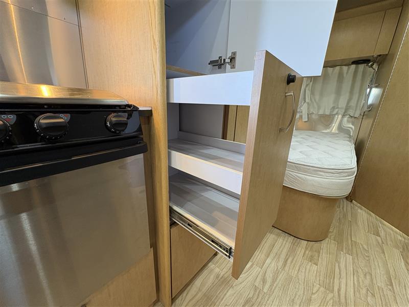 Inside, the 23D features a smart floorplan that maximizes space. A front dinette provides both dining and lounge space that converts into additional sleeping for guests. The mid-kitchen comes complete with a three burner cooktop, refrigerator, sink, and ample storage. Toward the rear you will find a dedicated sleeping area, wardrobe storage, and a full bathroom with shower, sink, and toilet.