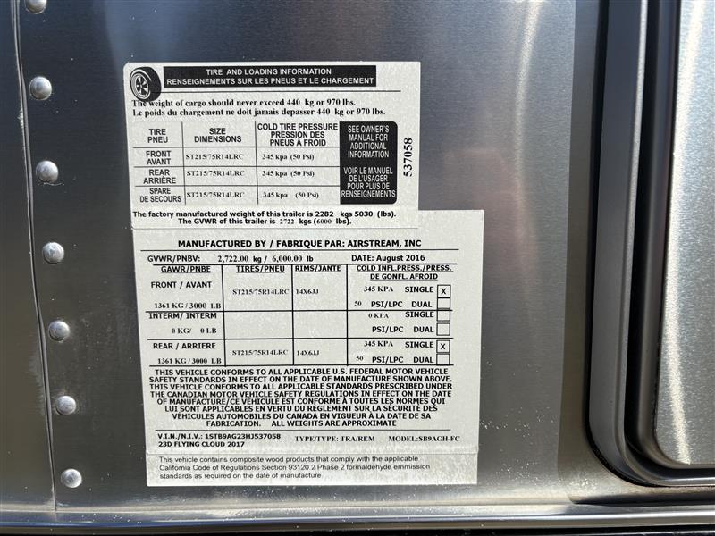 Used 2017 Airstream Flying Cloud 23D Travel Trailer