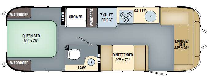 Enjoy all of your camping trips in this Airstream International Serenity travel trailer model 28. This unit features a front bedroom, plenty of seating in the rear with a dinette/bed that is 39" x 76", and a lounge/bed that is 44" x 97". Each seating space offers a place to enjoy a meal or snack, or a little down time to just kick back and relax!