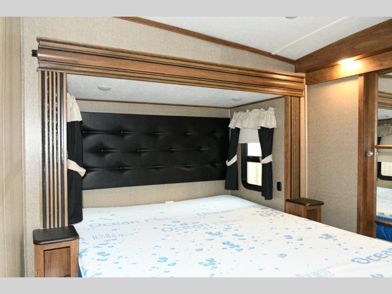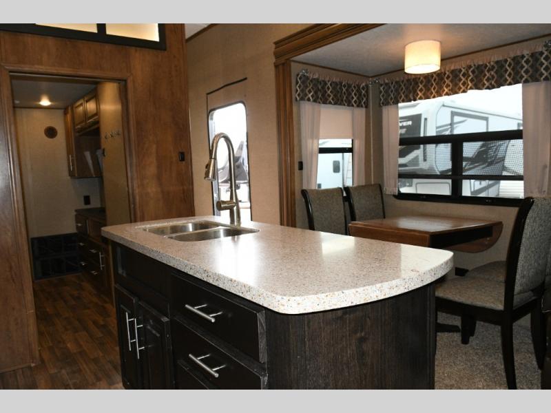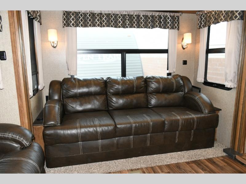This Brookstone model is built for families who want room to spread out. Guests enjoy their own dedicated bedroom and loft, kids love the extra play and sleep zones, and adults appreciate a private master suite tucked away up front. Even rainy days become enjoyable thanks to the roomy living area, comfortable seating, and entertainment center. Whether you are hosting friends at the campground or embarking on cross-country adventures, the 395RL offers space, comfort, and capability for every moment.