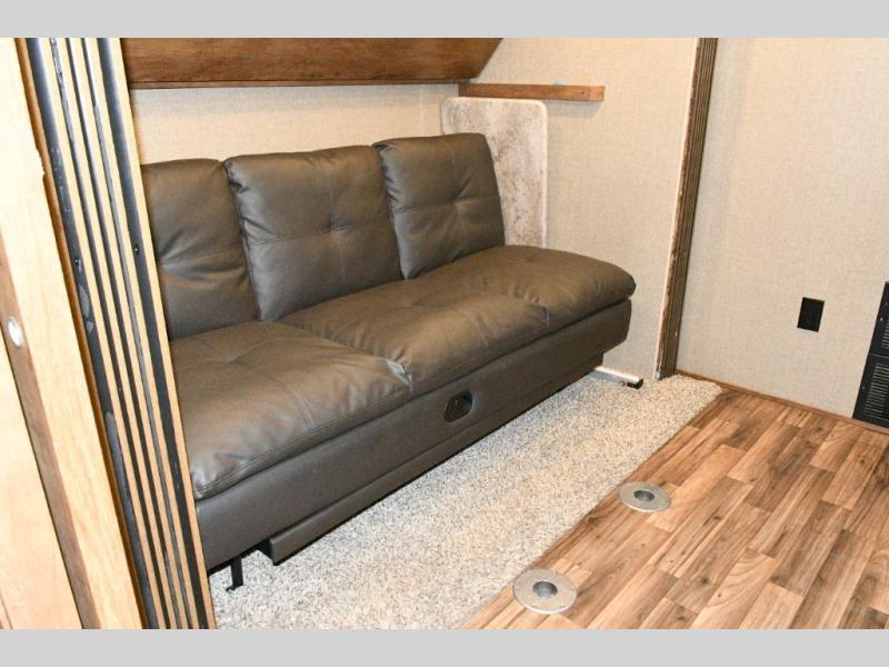 • Flip-down bunk above the sofa for additional sleeping capacity