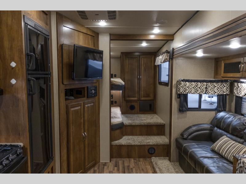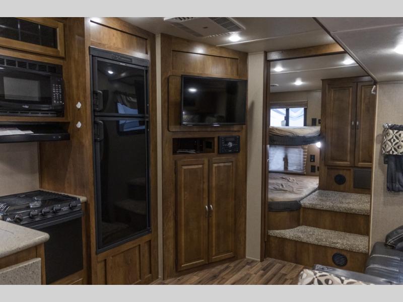 Double your fun and time in the 295BHS Chaparral Lite fifth wheel by Coachmen RV. This model features double slide outs and a double rear bunk bed as well as a pull-out exterior kitchen.